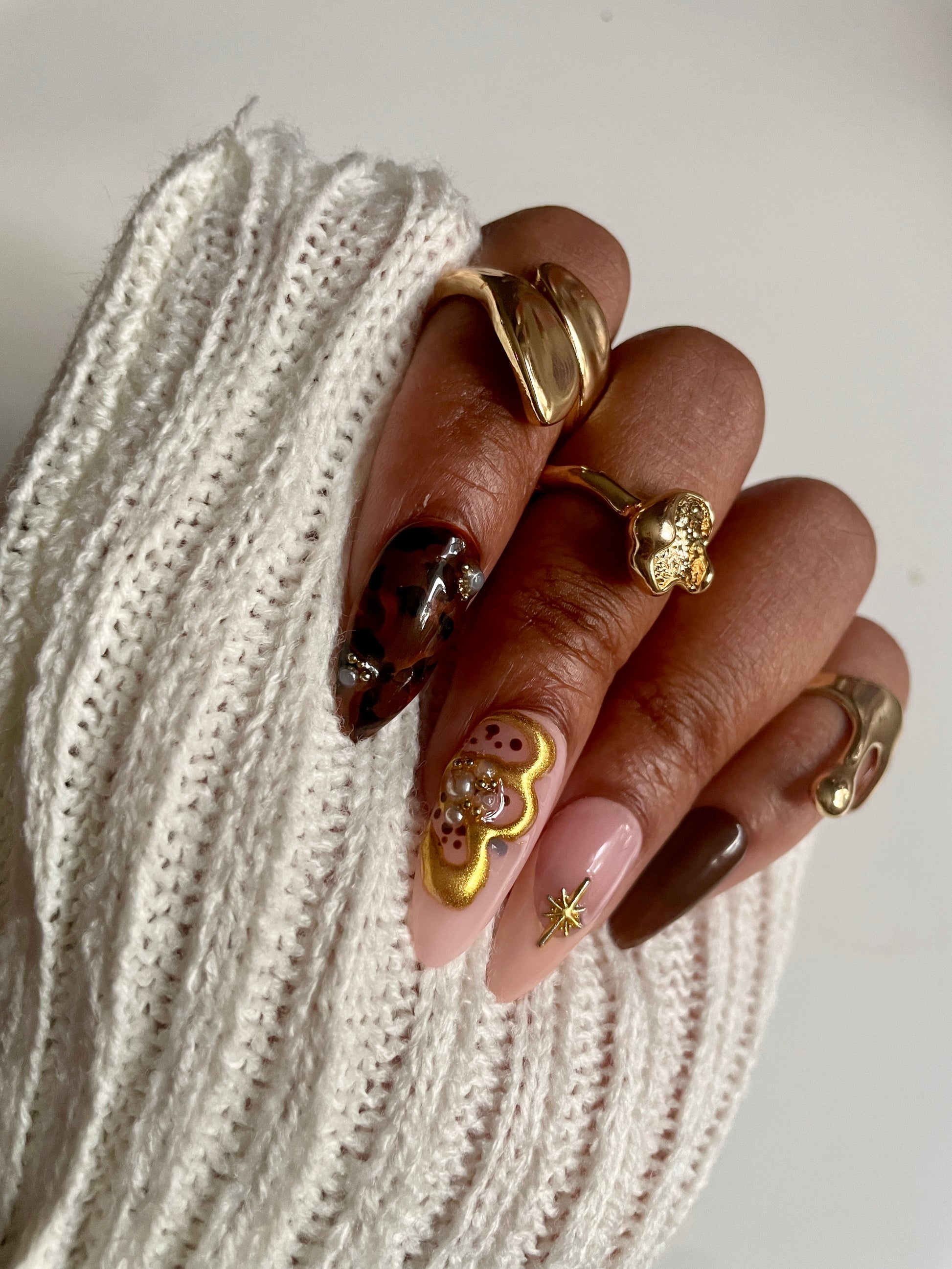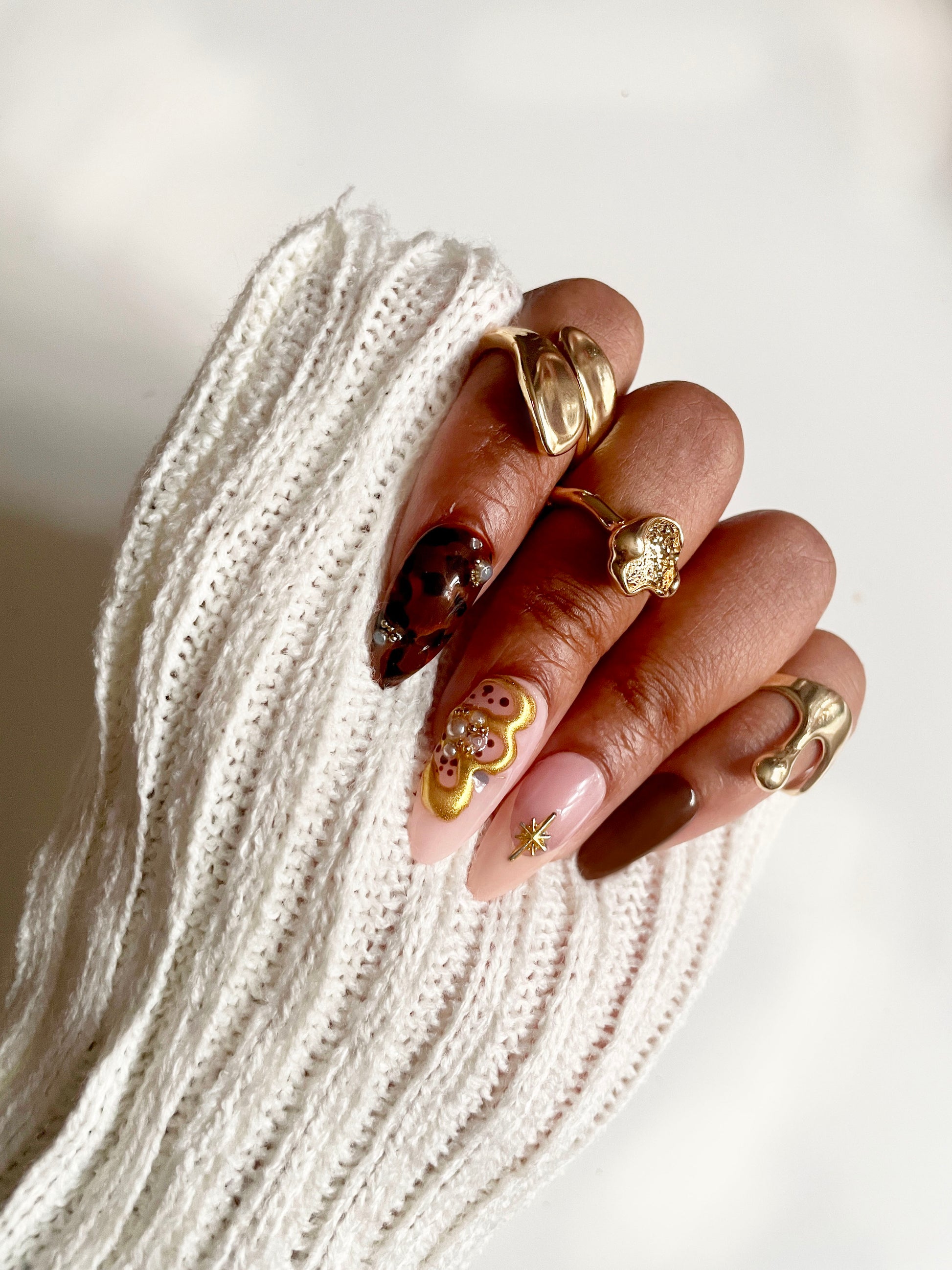 Each nail is meticulously hand-painted with creamy latte swirls, espresso-brown accents, and delicate foam details that capture the cozy elegance of your favorite café moment. This bespoke design blends luxurious neutrals with artisan craftsmanship, creating a wearable statement piece for the discerning nail enthusiast.